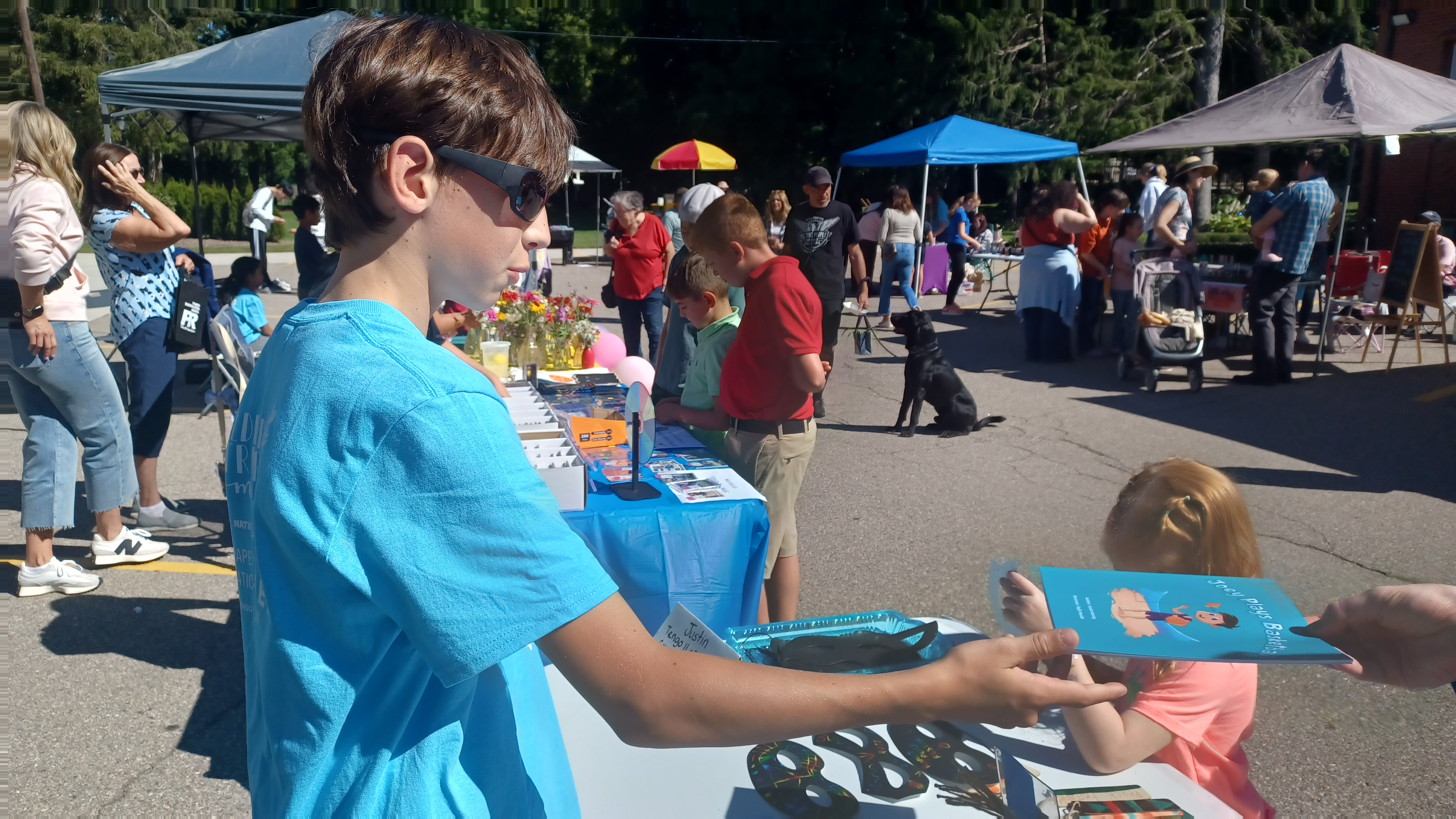 Justin had a wonderful time at the Romeo Peach Festival. His goal was to sell all of his inventory of books and he did it! It was a great event and he had so much fun! It is a great experience to watch young entrepreneurs in action!